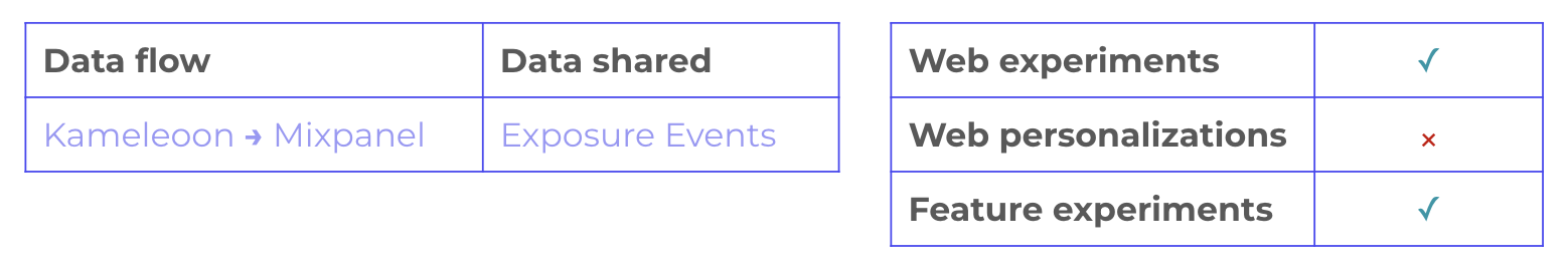 The Kameleoon Mixpanel Event Streaming integration allows you to automatically send events to your Mixpanel account whenever visitors are exposed to one of your Kameleoon experiments. This integration enables enriched analytics in Mixpanel, providing insights into experiment exposure to help you better understand user behavior and engagement.