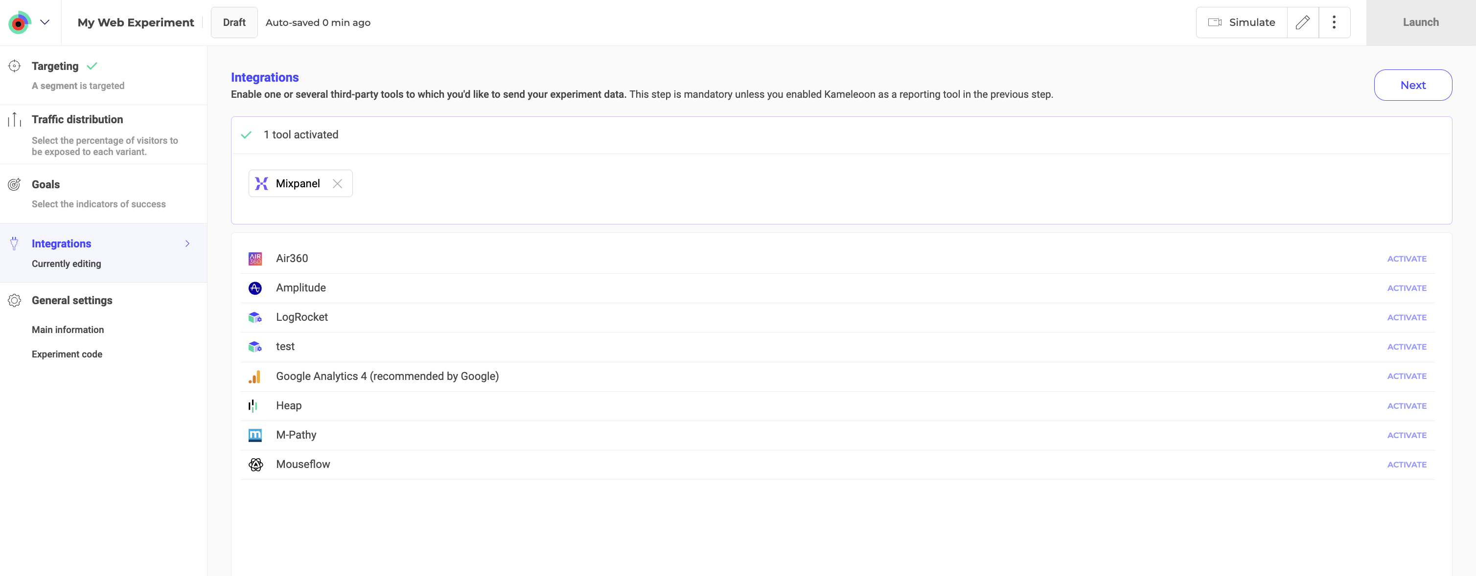 - Effortless setup: Enable third-party integrations directly from the Kameleoon app with no need for custom code or SDK changes.