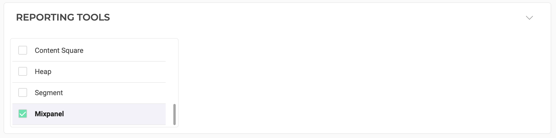You can associate Mixpanel with a campaign in the campaign creation page. Select it from the list of REPORTING TOOLS.