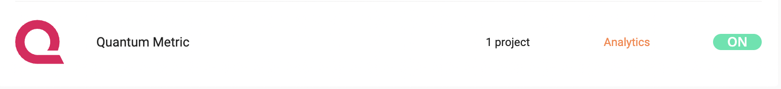 You will then see an ON toggle on the right of the tool's line, and the number of projects on which the tool is configured.