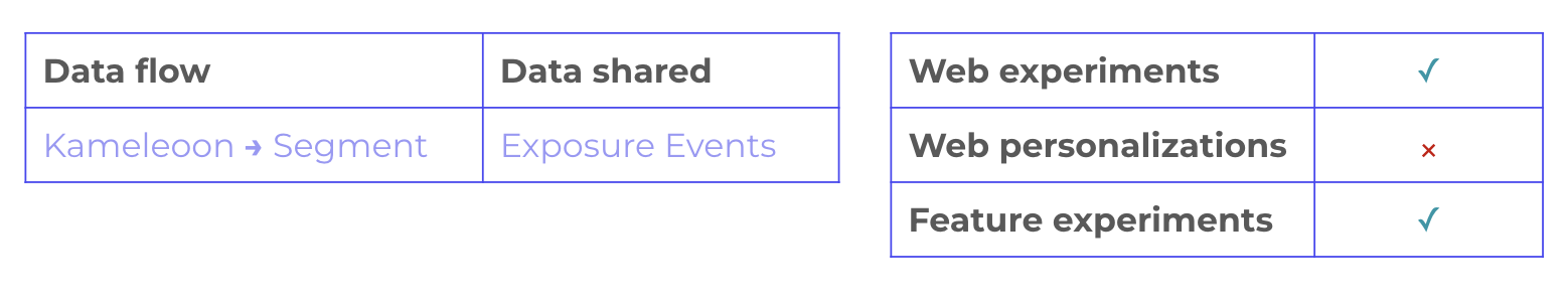 Once the integration is activated and your experiment is live, Kameleoon will begin sending experiment events to Segment whenever a visitor is exposed. These events include key details such as: