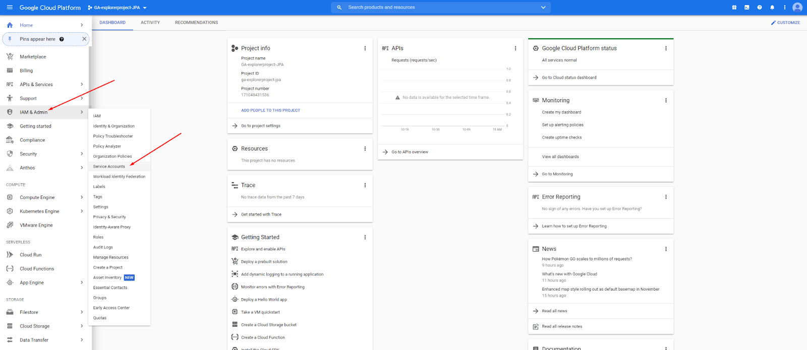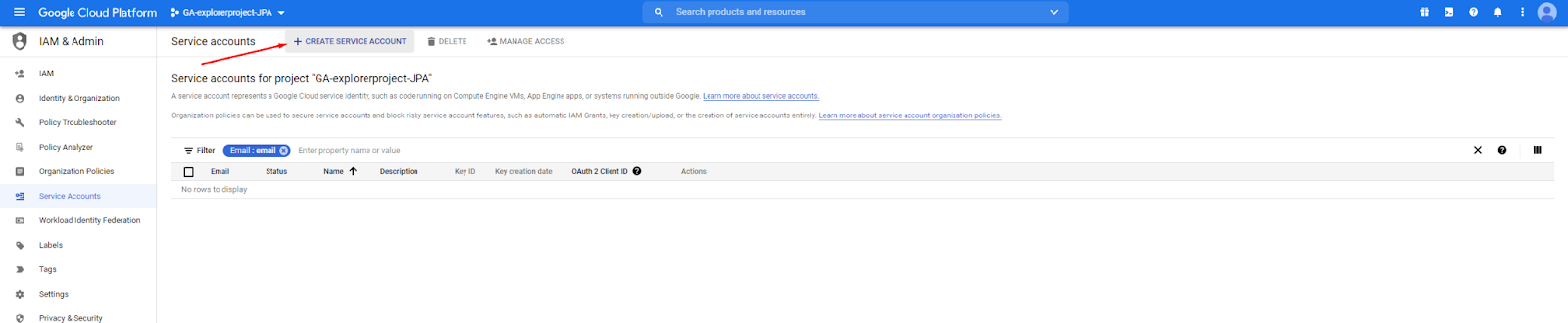 - An email account with admin access to Google Analytics that will be used to generate a project and service account.