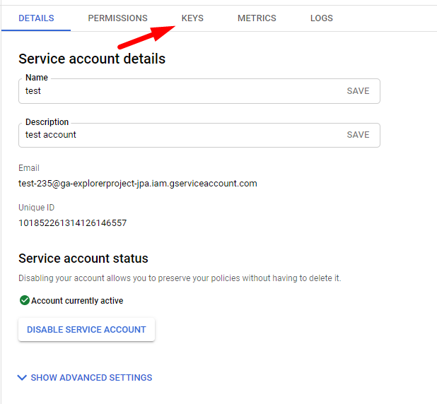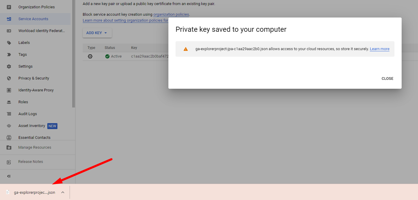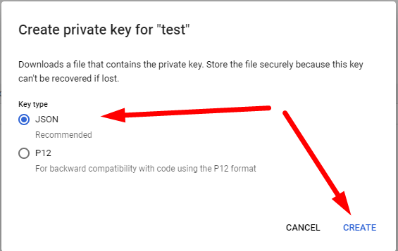 - The credentials of a service account in a JSON format. Please use a compression tool to secure this file with a password then send the package separately from its password.