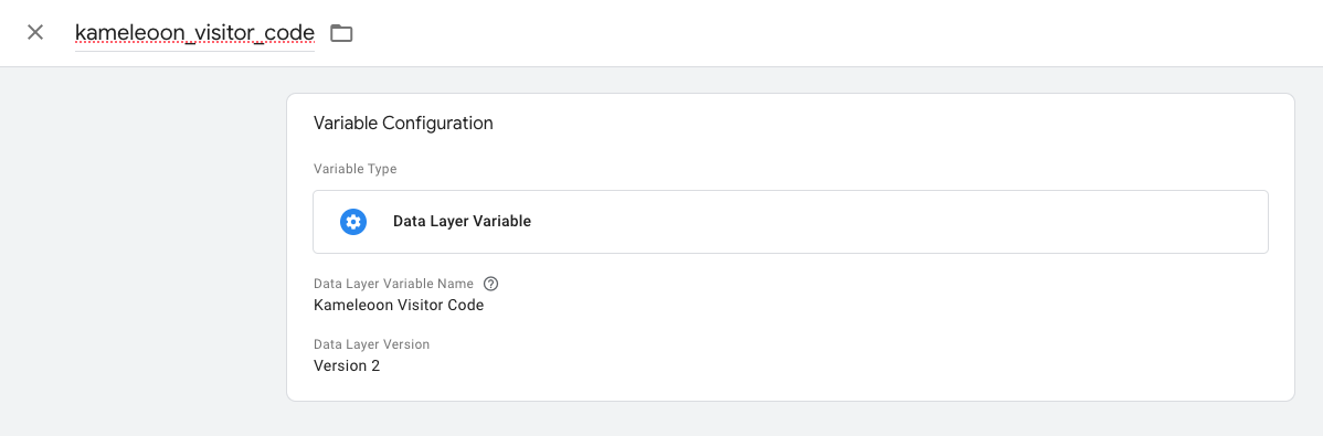 - Data Layer Variable Name: Kameleoon Visitor Code