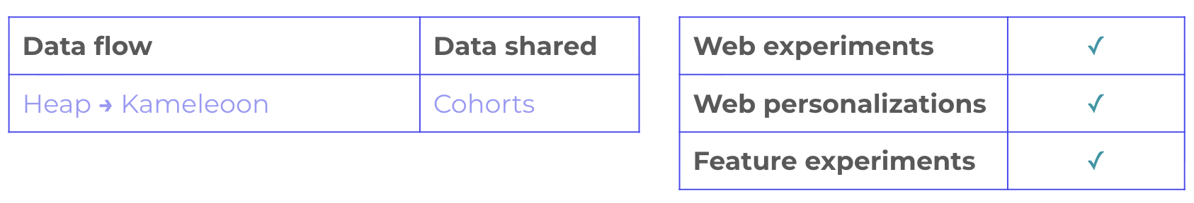 - Seamless cohort sync: Import user segments from Heap into Kameleoon effortlessly.