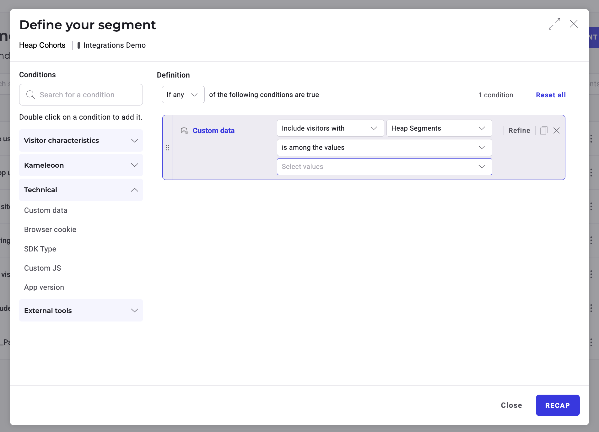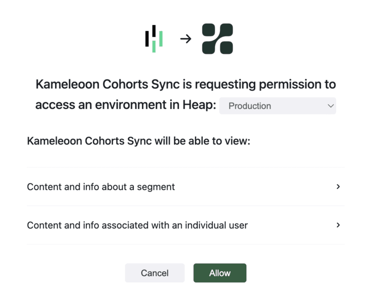 You can use the Kameleoon Heap Cohorts integration to sync segments from Heap with Kameleoon.
