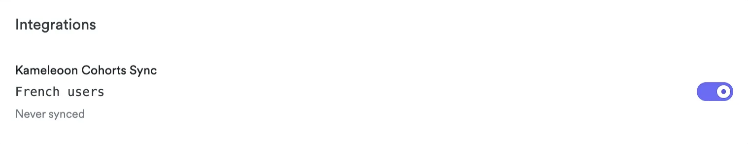 - At the bottom of the page, enable Kameleoon Cohorts Sync for that segment.