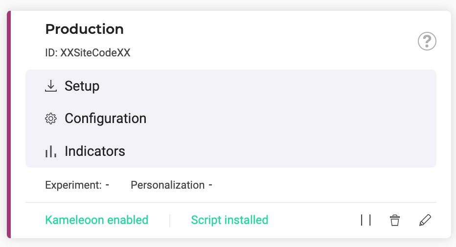 - Remember to enter your Kameleoon sitecode.