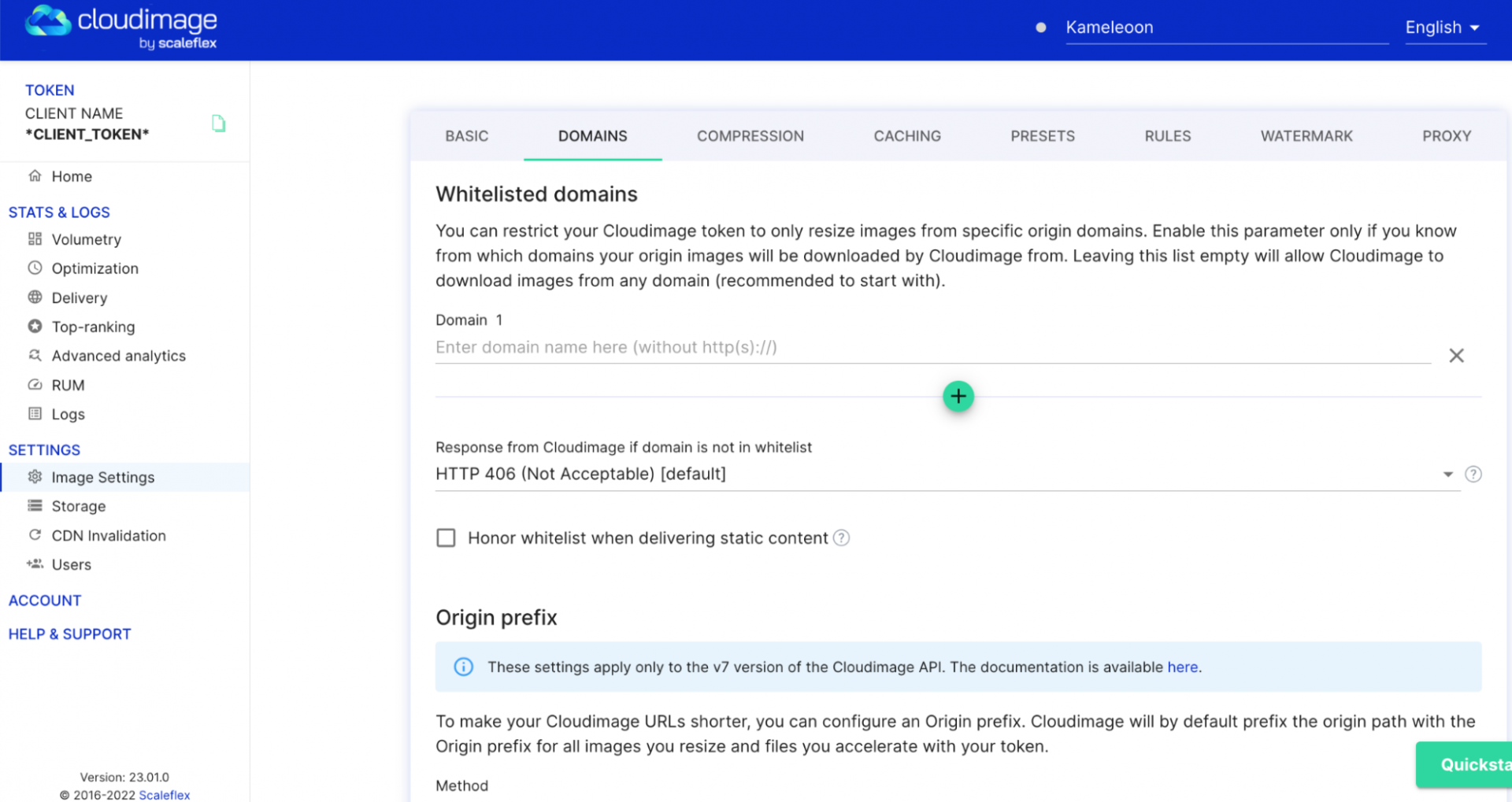 - In CloudImage, select Image settings > Domains.