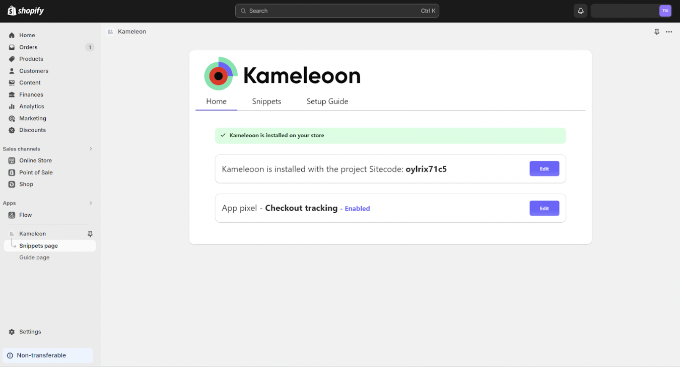 The Kameleoon script is then automatically injected into all of your shop's pages.