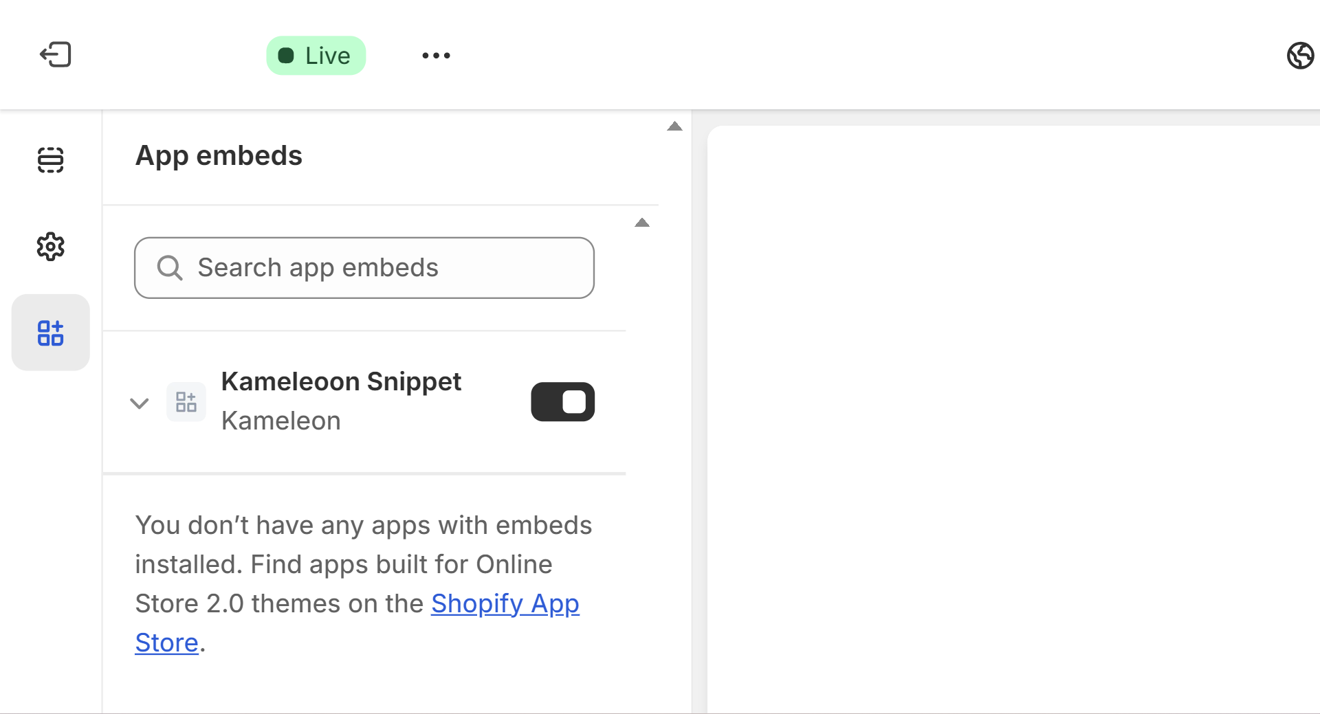 - Once saved, navigate to your theme, where you'll find the "Kameleoon Snippet" extension.