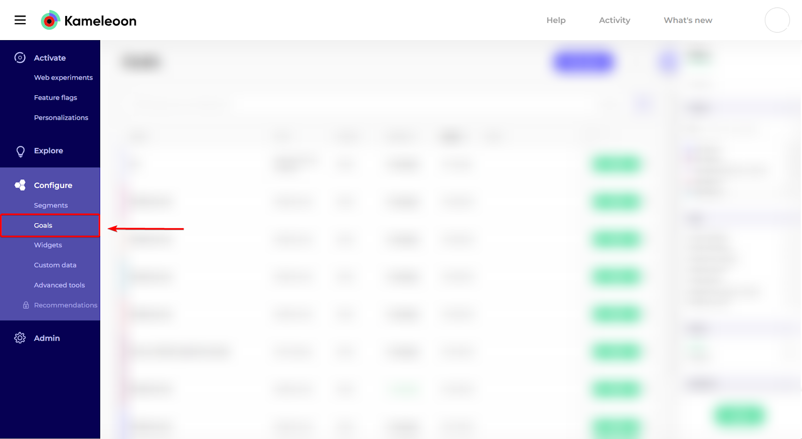 - Click Configure > Goals.