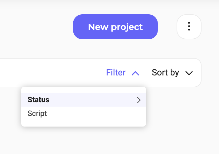 You can filter projects by status (Kameleoon enabled/disabled) or by script (script installed/not installed).