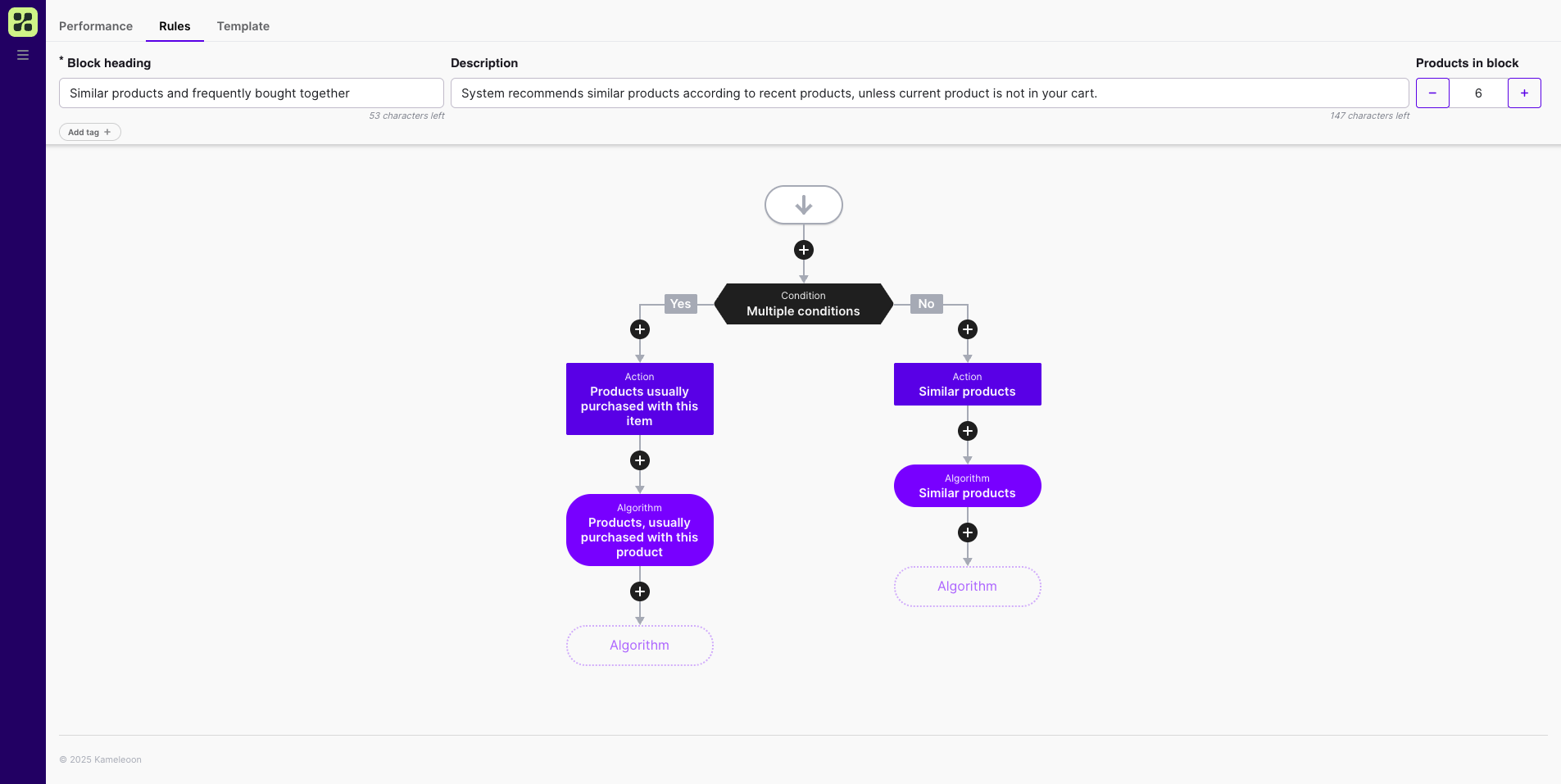Kameleoon evaluates rules from top to bottom. If there are not enough products matching the rules of one block, Kameleoon moves to the next block.